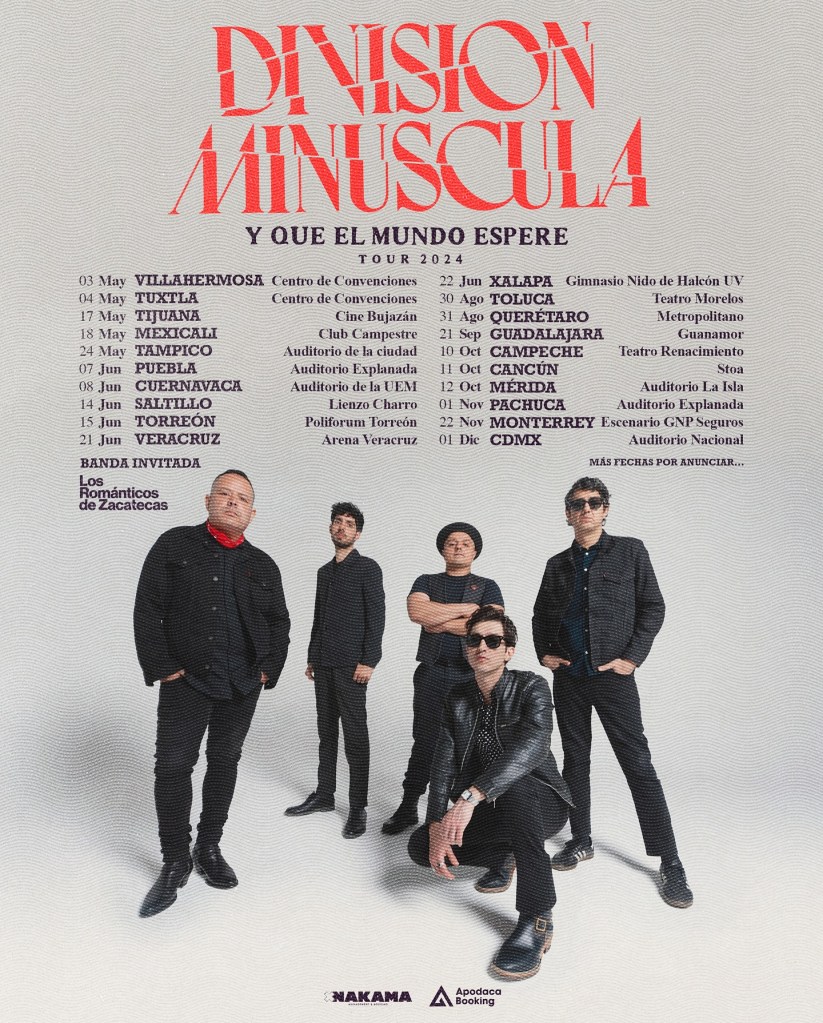 En 2023, tras más de una década desde el lanzamiento de División, su último disco de larga duración, los oriundos de Matamoros publicaron un nuevo material de estudio titulado Escombros, compuesto por ocho tracks que nos remontan a los orígenes de la banda con temas como “Laberintos” o “La última llamada”. Y aunque después de la publicación del disco tuvieron algunos shows dentro y fuera del país, Escombros no había sido presentado como tal, pero este año División Minúscula regresa con un nuevo tour, Y Que El Mundo Espere, con el que recorrerán gran parte del país en compañía de Los Románticos de Zacatecas, banda encargada de abrir los shows y quienes estarán festejando 15 años de trayectoria.