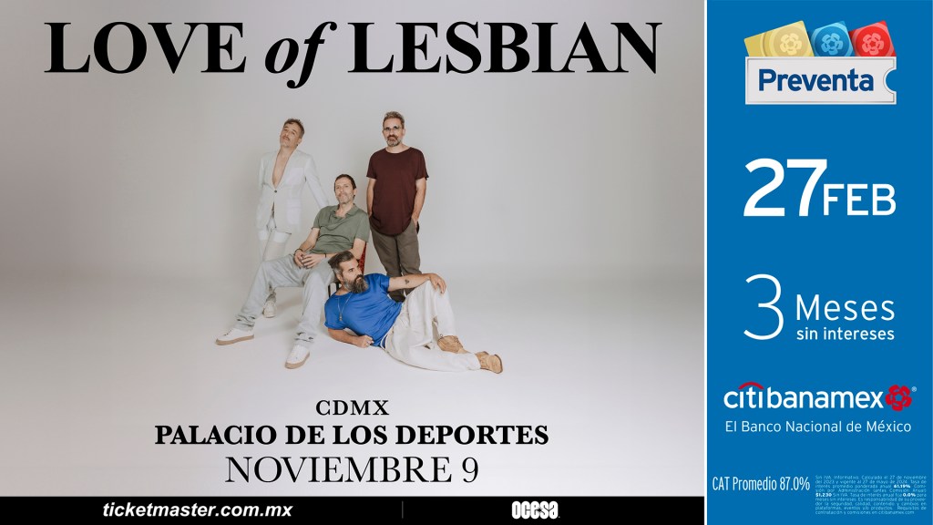 Si quieres ser parte de la nueva etapa que la banda iniciará este año y adentrarte en el universo sonoro de Love of Lesbian, podrás adquirir tus boletos este 27 de febrero en la preventa Citibanamex o en venta general a partir del 28 de febrero.