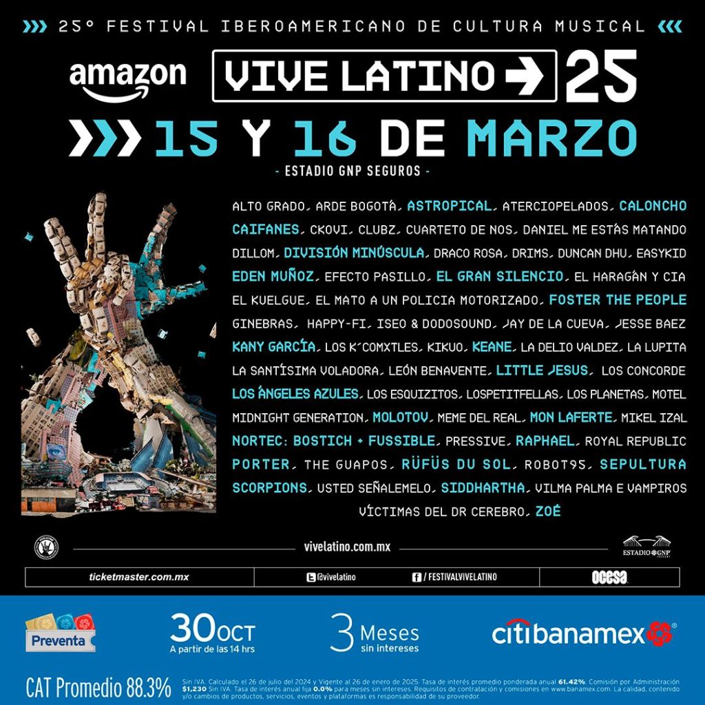 Dos aspectos a resaltar son que, este 2025 Amazon repite como patrocinador principal del festival, así que si el año pasado se quedaron sin su changuito mensajero, tal vez en esta ocasión puedan conseguirlo. Por otro lado, como mencionamos anteriormente, Vive Latino regresa a casa, al ahora llamado Estadio GNP Seguros, situación que sinceramente muchos esperábamos, pues podremos disfrutar nuevamente del festival en el lugar que le vio nacer y crecer con zonas que son ya tradición como El Parque o El Mercadillo.