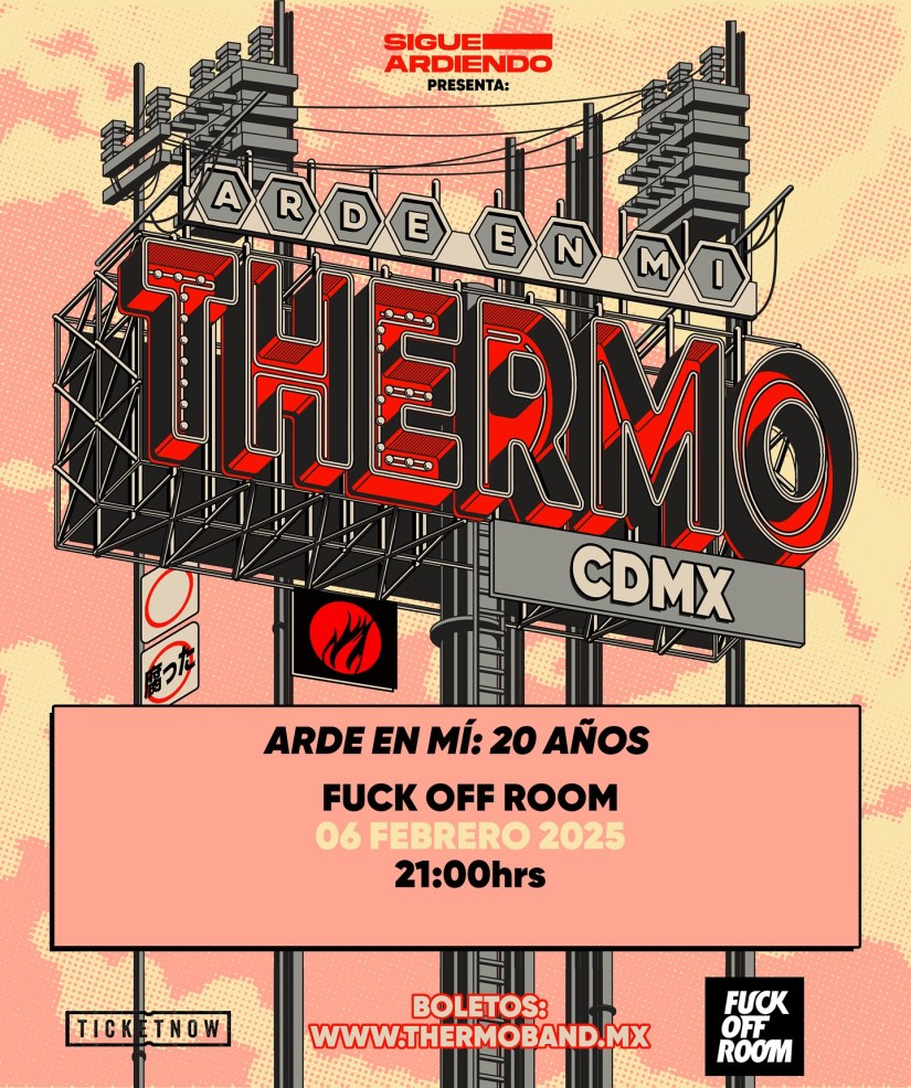 A 20 años de la publicación de Arde En Mí, Thermo lanzó una reedición del disco, mismo que finalmente puede encontrarse en plataformas digitales y que llegó acompañado de covers a canciones de algunas bandas con las que Thermo ha crecido y formado gran amistad, tal es el caso de “Extrañando casa”, original de División Minúscula, o “Roces accidentales”, de Insite, con quienes el año pasado compartieron la gira Qué Arda El Cielo, con la que se iniciaba la celebración de Arde En Mí, disco que podremos escuchar completo este 6 de febrero en el Fuck Off Room de la Ciudad de México.