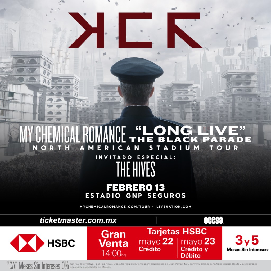 El show será por demás especial, pues la banda interpretará en su totalidad el álbum The Black Parade, por lo que en esta ocasión sí podremos disfrutar en vivo de algunos temas que dejaron fuera en su última visita a CDMX, tal es el caso de “I Don’t Love You” o “The Sharpest Lives”. Y como si no fuera suficiente con tener a My Chemical Romance en el escenario del Estadio GNP Seguros, la banda tendrá como invitados para abrir el show a ¡The Hives!, por lo que sí, nos espera una noche cargada de energía.