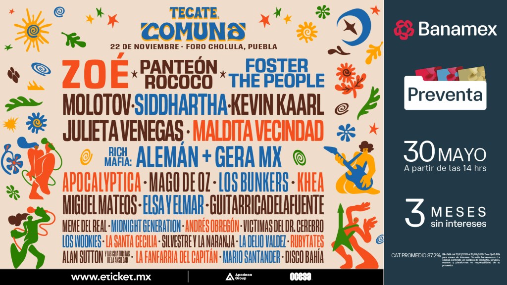 Como puedes ver, la propuesta musical y de actividades con las que contará Tecate Comuna 2025 será tan extensa que, como se mencionó antes, cubrirá los gustos de todo aquel que se dé cita el próximo 22 de noviembre en el Foro Cholula.