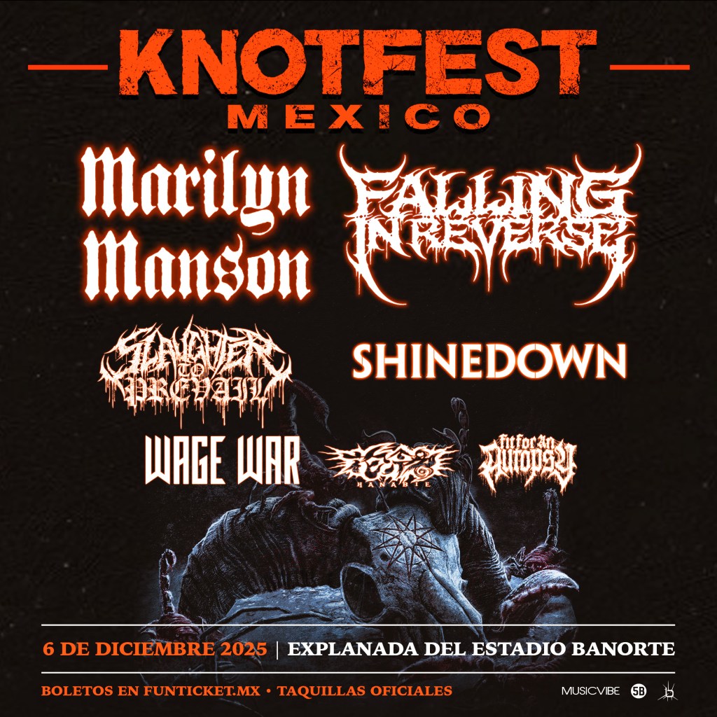 Esta nueva celebración de Knotfest México viene en grande, pues los headliners serán Marilyn Manson, quien regresa a CDMX dispuesto a dar misa con sus éxitos, y Falling in Reverse como una de las apuestas más fuertes del cartel.