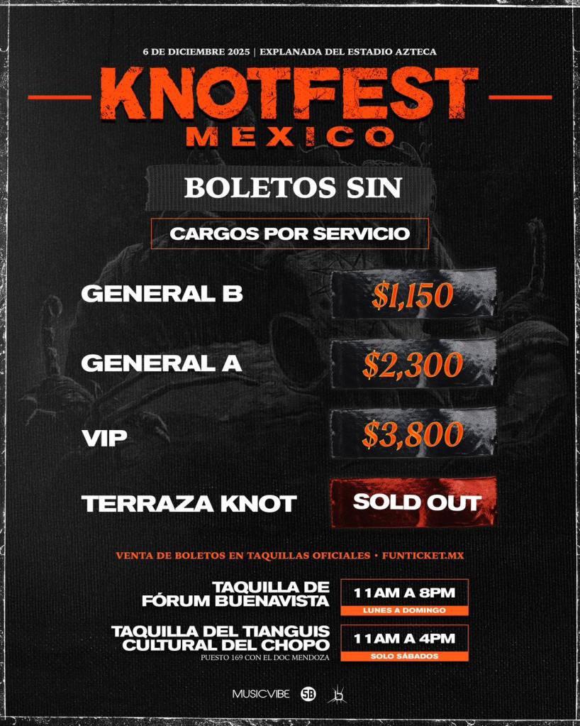 En cuanto a los boletos, se pueden adquirir a través de funticket.mx y hay disponibles con precios que van de los $1,150.00, en General B, a los $3,800.00 en sección VIP, y la posibilidad de compararlos a 3 meses sin intereses, así que no hay pretexto para perderse el regreso de uno de los festivales de metal más importantes, ¡Knotfest México!