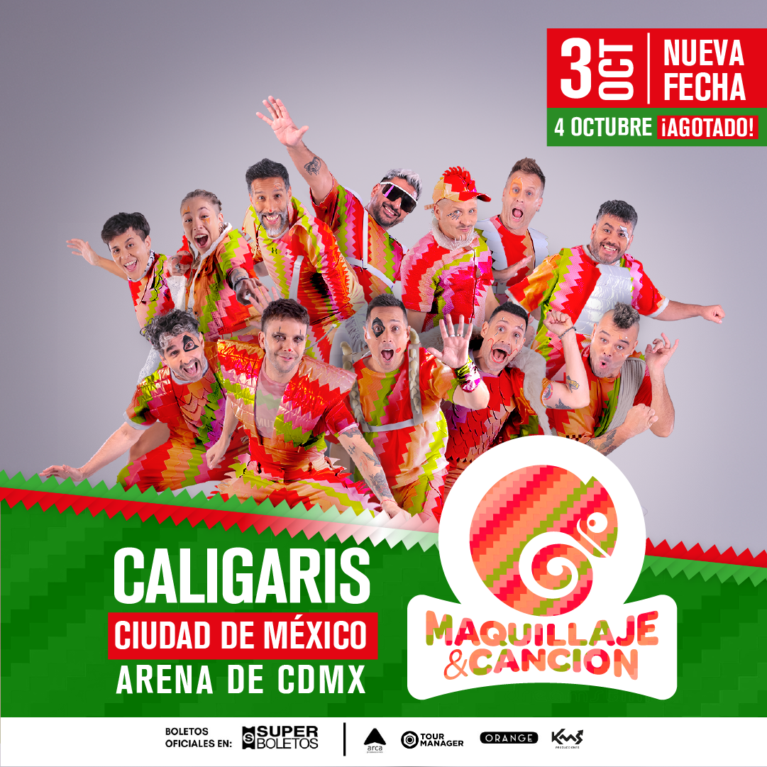 Los Caligaris, una de las bandas argentinas mรกs queridas en nuestro paรญs, se prepara para regresar a Mรฉxico con un nuevo show: โMaquillaje & Canciรณnโ, con el que llegarรกn por primera vez a uno de los recintos mรกs icรณnicos de la capital mexicana, ยกla Arena Ciudad de Mรฉxico! Y serรก por partida doble, pues tras haber agotado rรกpidamente una primera fecha, 3 de octubre, la agrupaciรณn sorprendiรณ con el anuncio de una segunda presentaciรณn el dรญa 4 de octubre.